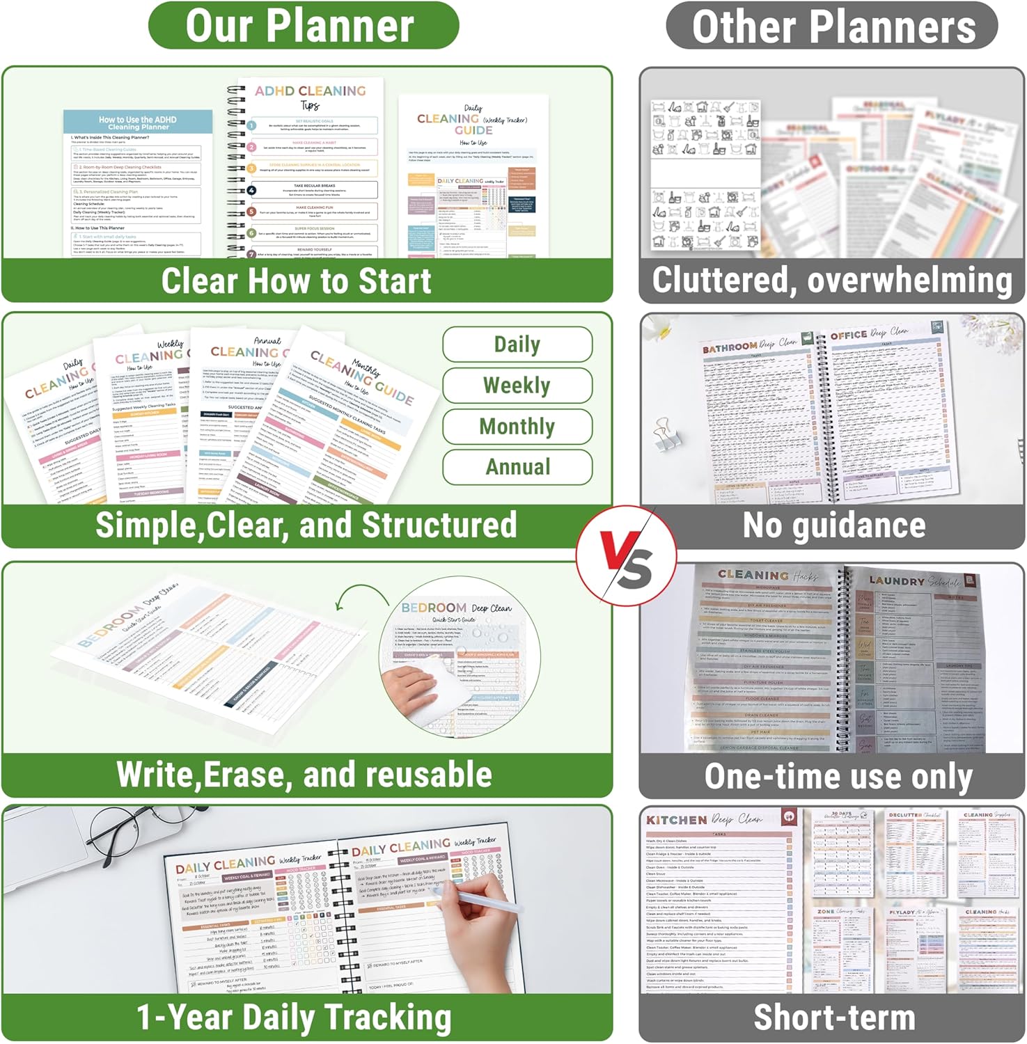 The ADHD Cleaning Schedule & Planner is perfect for anyone who wants to stay organized but struggles with focus, routines, or staying on top of housework.