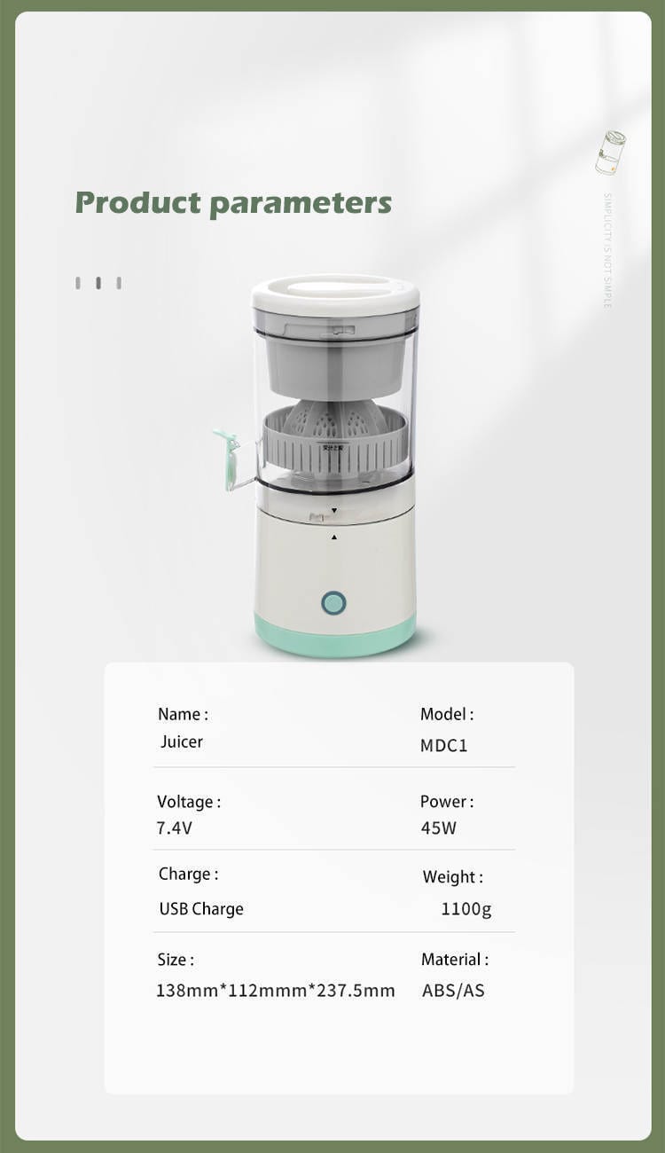 Electric USB Charging Juice Presser Squeezer Orange Lemon Juicer Portable 45W